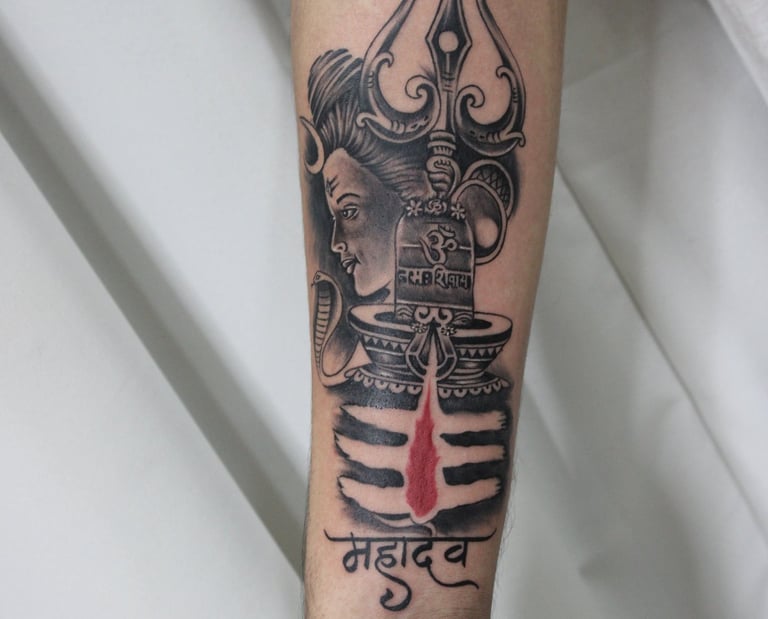 Explore our sacred collection of Mahadev, Trishul, and Shivling tattoos — where spirituality meets artistic mastery.